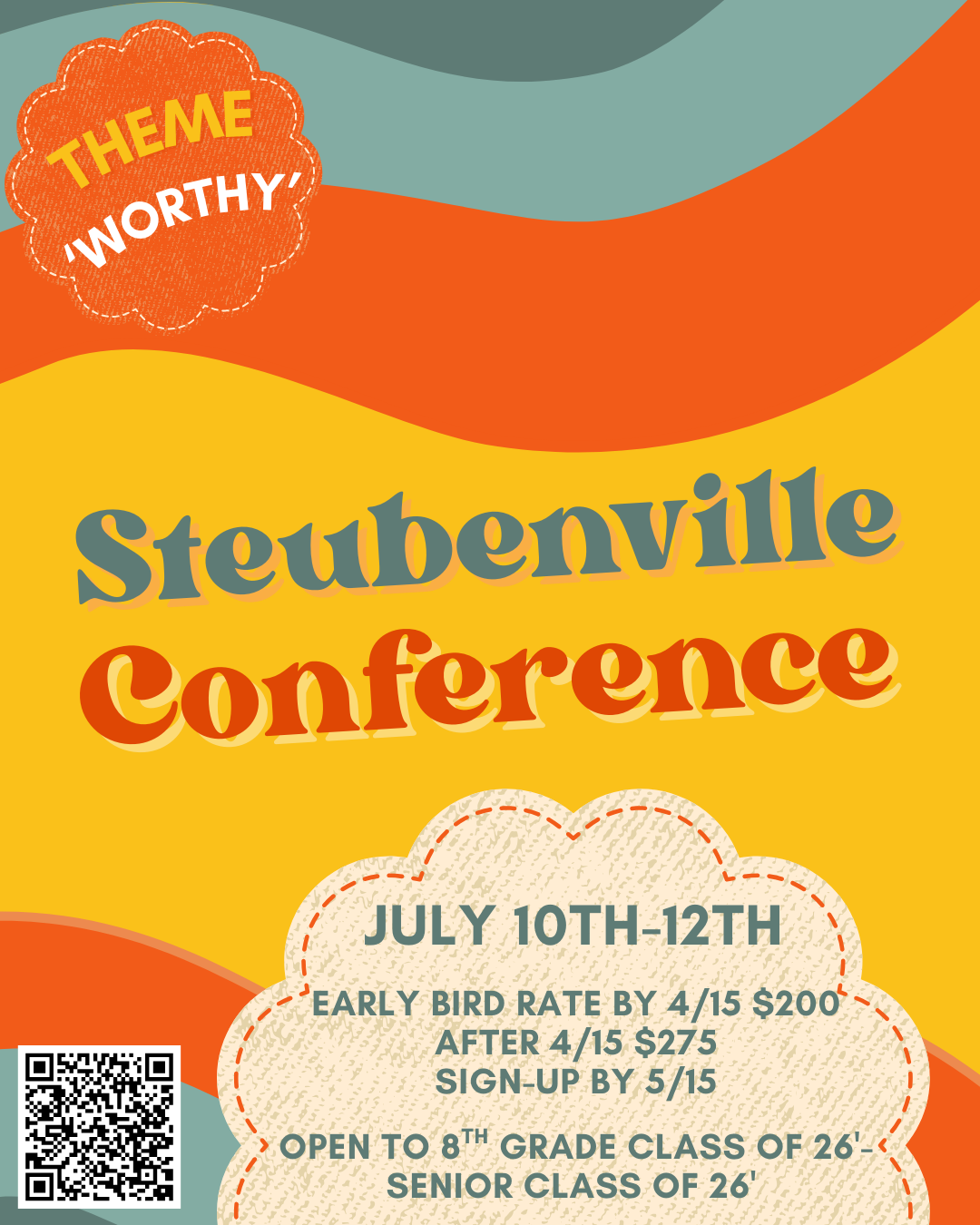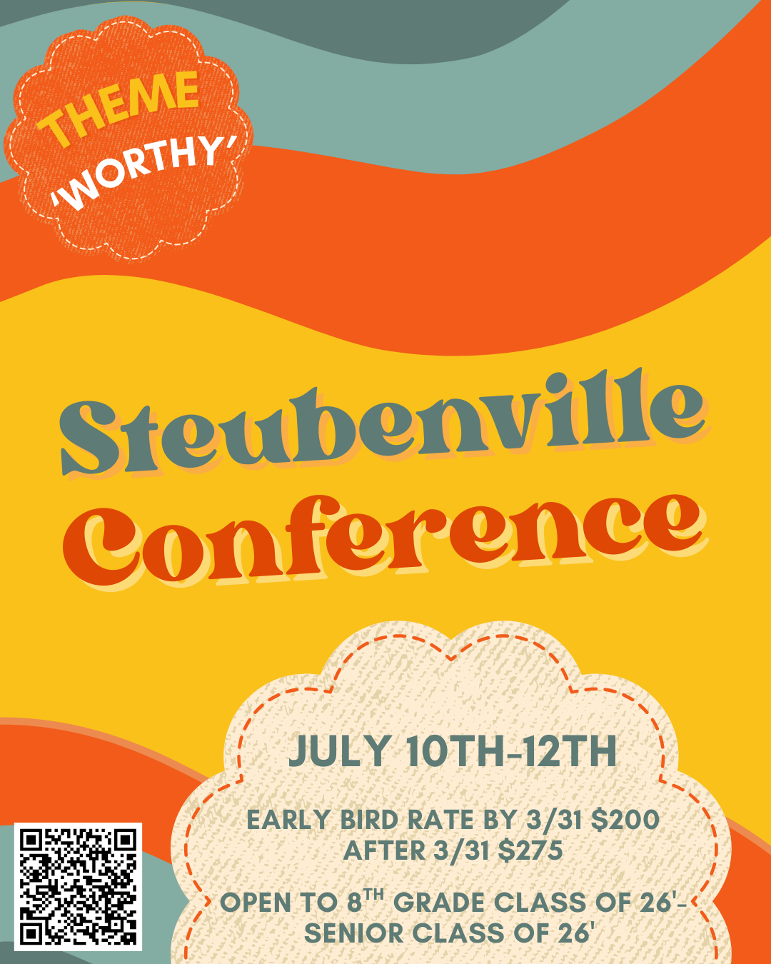 Payment + Registration is DUE 5/15 please make checks out to Holy Family Parish and bring in marked envelope to rectory office Att: Meghan Kiel, your teens full name, Steubenville