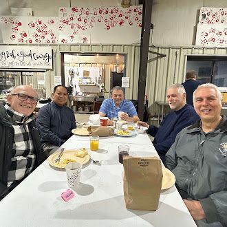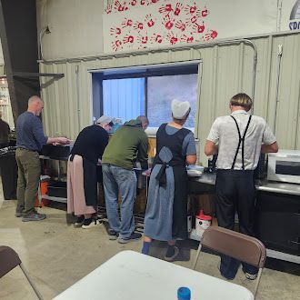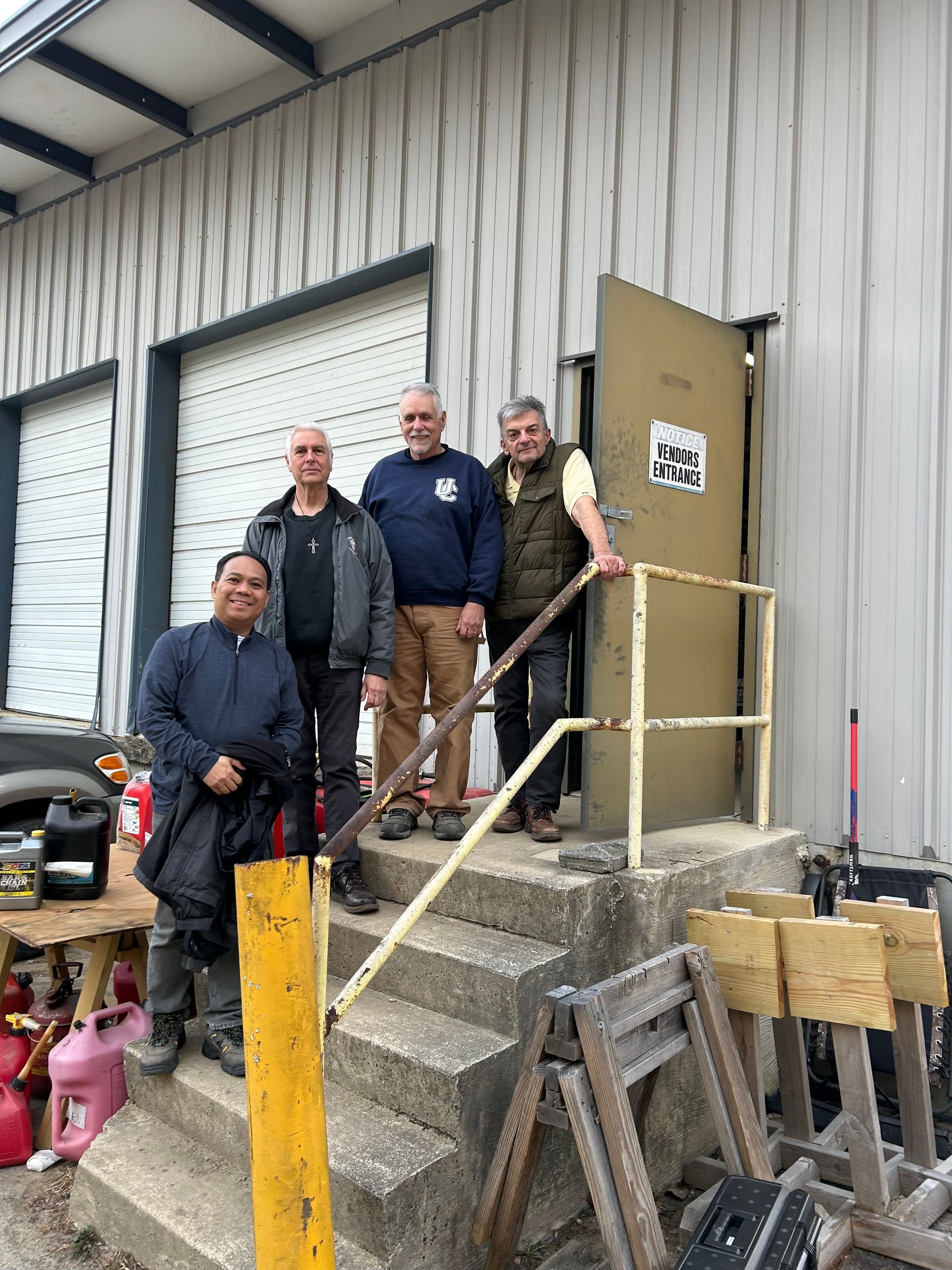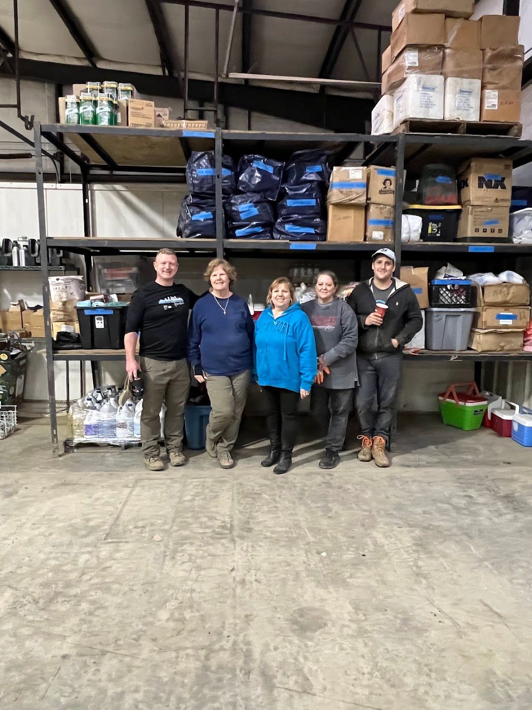 One highlight from the week is a photo of the team gathered on the stairs at the Spokes of Hope Base Camp. The doorway behind them leads into their home base, where they passed through a 50,000-square-foot warehouse each day on their way to the dining area. It stands as a powerful reminder of the scale of the mission and their dedication to serve.