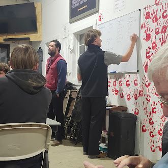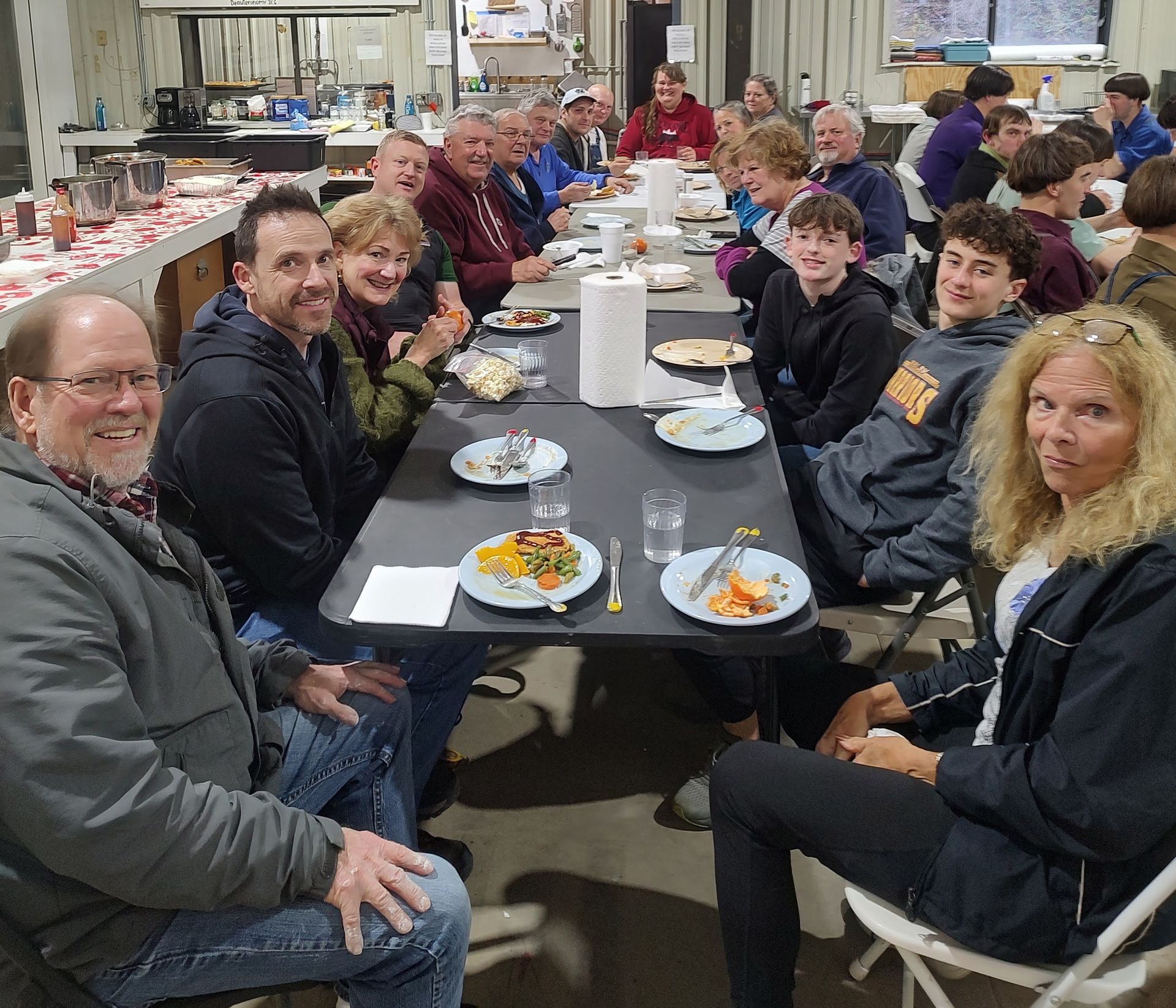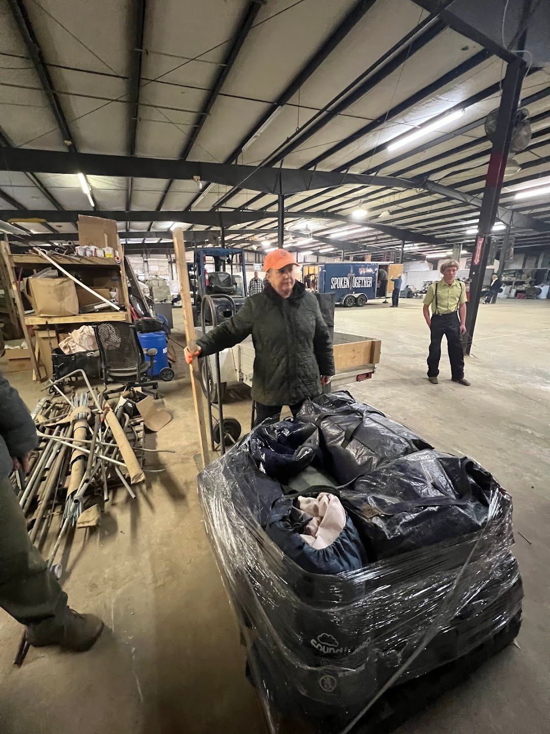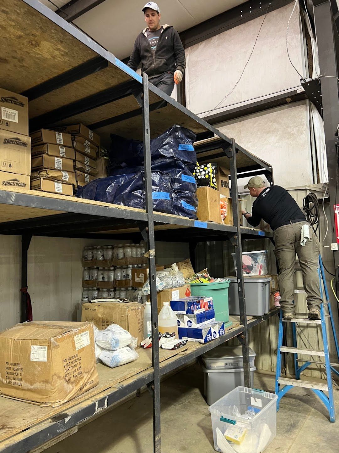 One highlight from the week is a photo of the team gathered on the stairs at the Spokes of Hope Base Camp. The doorway behind them leads into their home base, where they passed through a 50,000-square-foot warehouse each day on their way to the dining area. It stands as a powerful reminder of the scale of the mission and their dedication to serve.