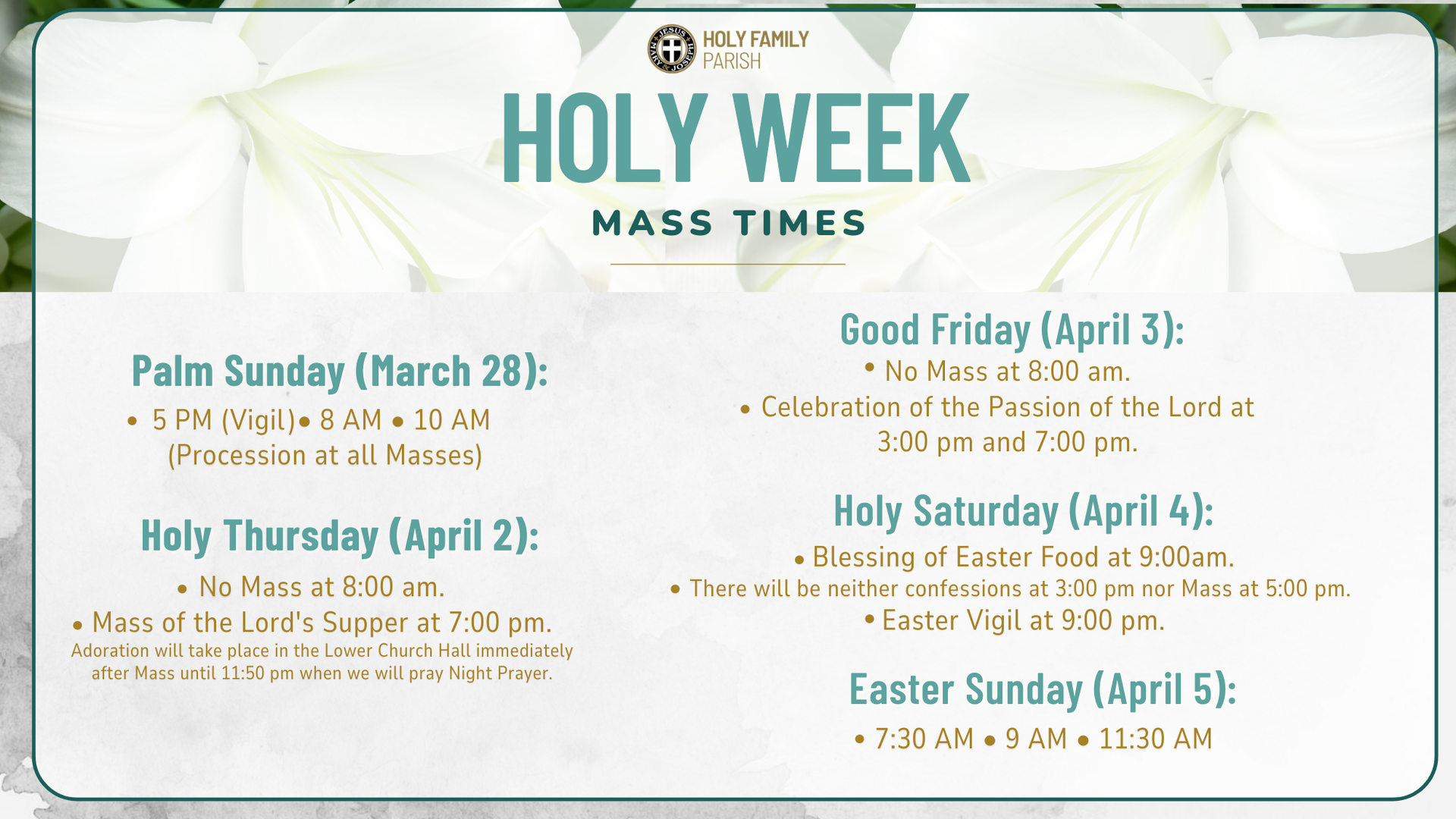 Lent & Holy Week 2026 at Holy Family Parish